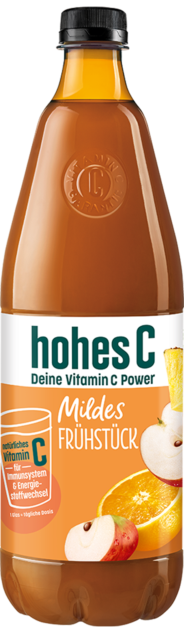 Schon gewusst? Bereits ein Glas hohes C Mildes Frühstück (0,25 L) deckt den Tagesbedarf an Vitamin C - und zwar mit natürlichem Vitamin C aus der Acerola. Vitamin C trägt zu einer normalen Funktion des Immunsystems und zu einem normalen Energiestoffwechsel bei. Eine ausgewogene Ernährung und gesunde Lebensweise werden empfohlen. Für unsere milden Säfte werden sorgfältig Früchte ausgewählt, die von Natur aus säureärmer sind.