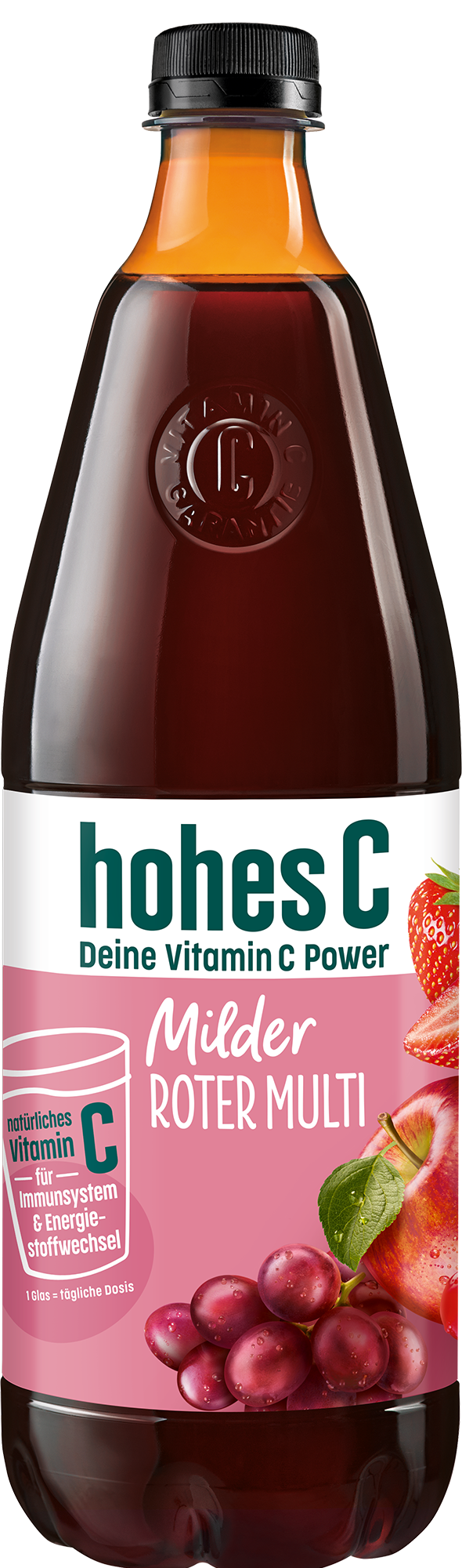 Schon gewusst? Bereits ein Glas hohes C Roter Multivitamin (0,25 L) deckt den Tagesbedarf an Vitamin C - und zwar mit natürlichem Vitamin C aus der Acerola. Vitamin C trägt zu einer normalen Funktion des Immunsystems und zu einem normalen Energiestoffwechsel bei. Eine ausgewogene Ernährung und gesunde Lebensweise werden empfohlen.