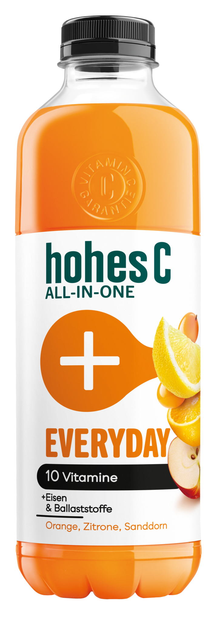 Schon gewusst? Bereits ein Glas hohes C Multivitamin (0,25 L) deckt den Tagesbedarf an Vitamin C - und zwar mit natürlichem Vitamin C aus der Acerola. Vitamin C trägt zu einer normalen Funktion des Immunsystems und zu einem normalen Energiestoffwechsel bei. Eine ausgewogene Ernährung und gesunde Lebensweise werden empfohlen.
