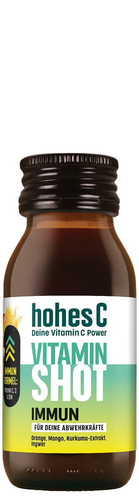 hohes C Vitamin Shot Immun ist dein leckerer Kickstart für jeden Tag. Ideal, um dir und deiner Gesundheit schnell und unkompliziert etwas Gutes zu tun. Die unvergleichliche Kombi aus Orange und Mango umspielt deinen Gaumen, während Madagaskar-Ingwer und Kurkuma-Extrakt für das gewisse Extra sorgen. Ein Shot deckt deinen Tagesbedarf an natürlichem Vitamin C zu 100%, Vitamin D zu 75% und Zink zu 15%. Diese tragen zur normalen Funktion des Immunsystems bei - eine ausgewogene Ernährung und gesunde Lebensweise werden empfohlen.