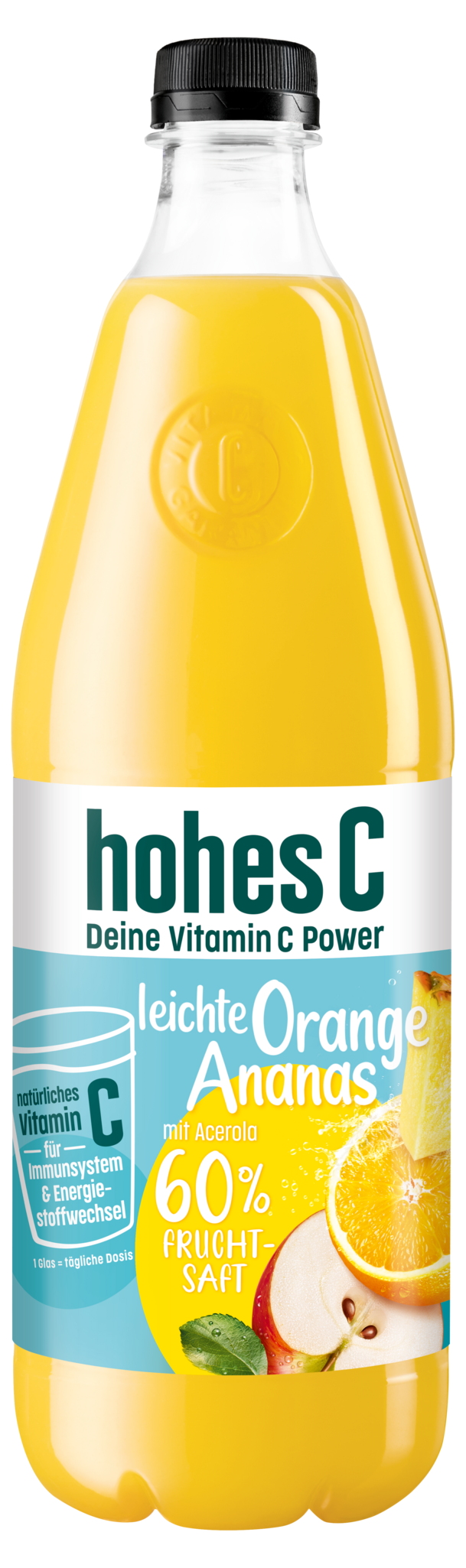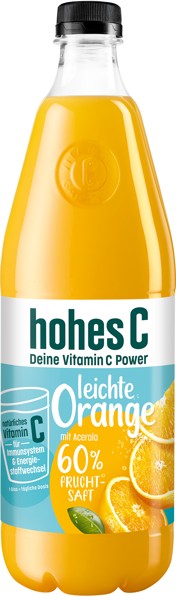 Dein Glas natürliches Vitamin C - jetzt auch in leicht, mit hohes C die Leichten. Bereits ein Glas (250 ml) deckt deinen Tagesbedarf an Vitamin C – und das bei 60% Fruchtsaft.